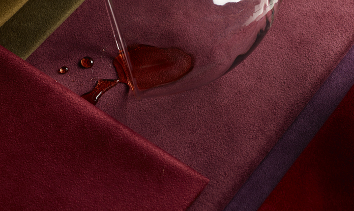 Sensuede is exceptionally care free, as most liquid spills will bead up on contact. If stains do occur, most can be removed with either a damp cloth, or a sponge soaked in warm sudsy water. Solvents are not necessary. Sensuede is machine-washable with mild detergent in cold-water. Do not bleach, and dry in a low-setting in a dryer. Restore the luxe look and nap of Sensuede with a soft-bristle brush or lint brush. Vacuum periodically to remove dust.